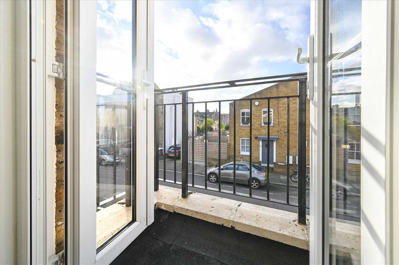 This period style house comprises of a bay-fronted reception, a semi open plan contemporary kitchen, bathroom, a master bedroom with fitted wardrobes and a west facing balcony and a second single bedroom.